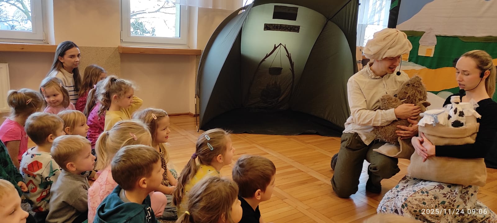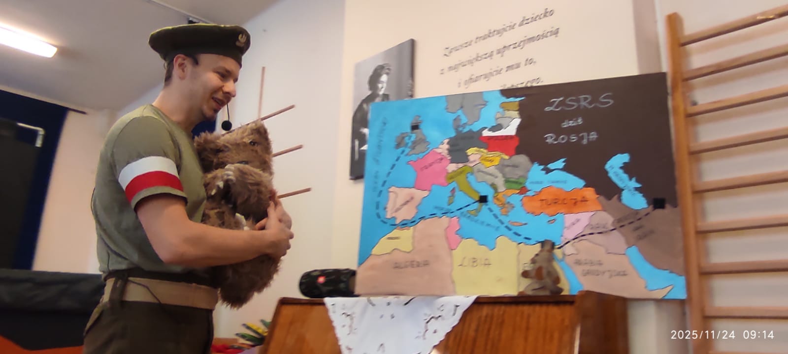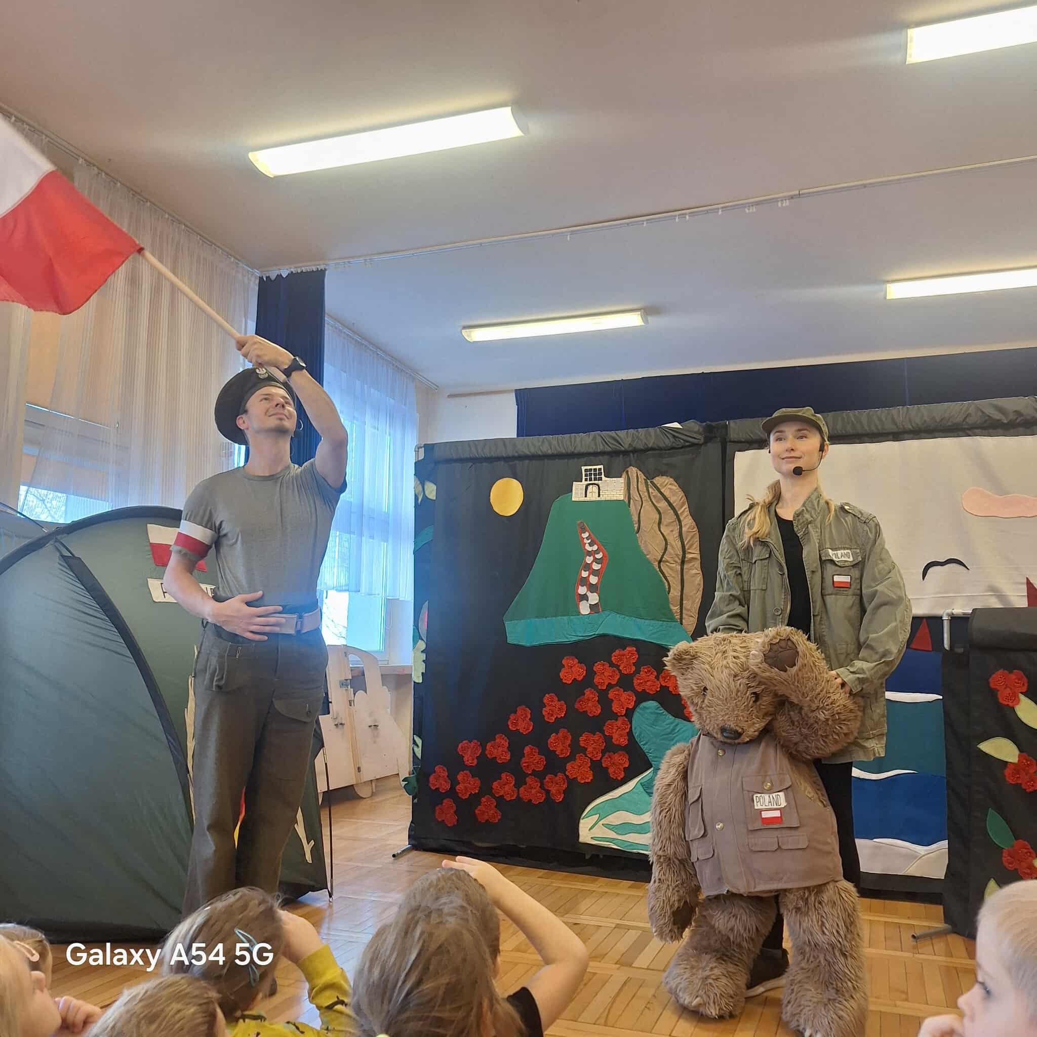 Aktorzy w ramach realizacji projektu Przystanek Historia Stalowa Wola zaprezentowali dzieciom historię niedźwiedzia który stał się żołnierzem.
